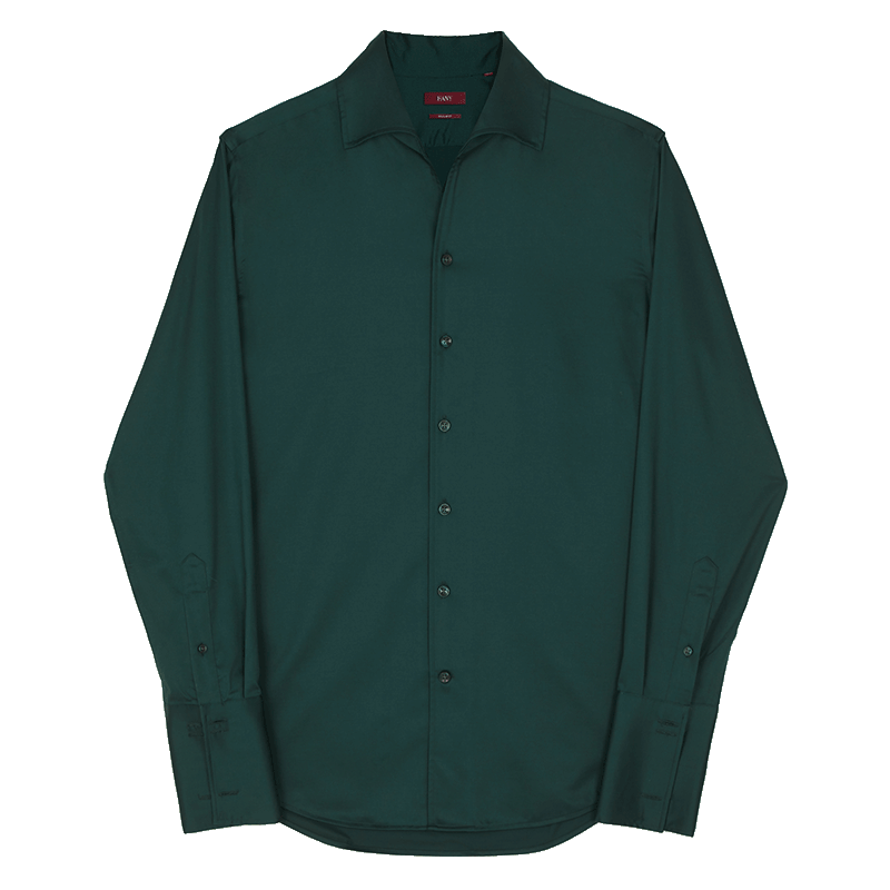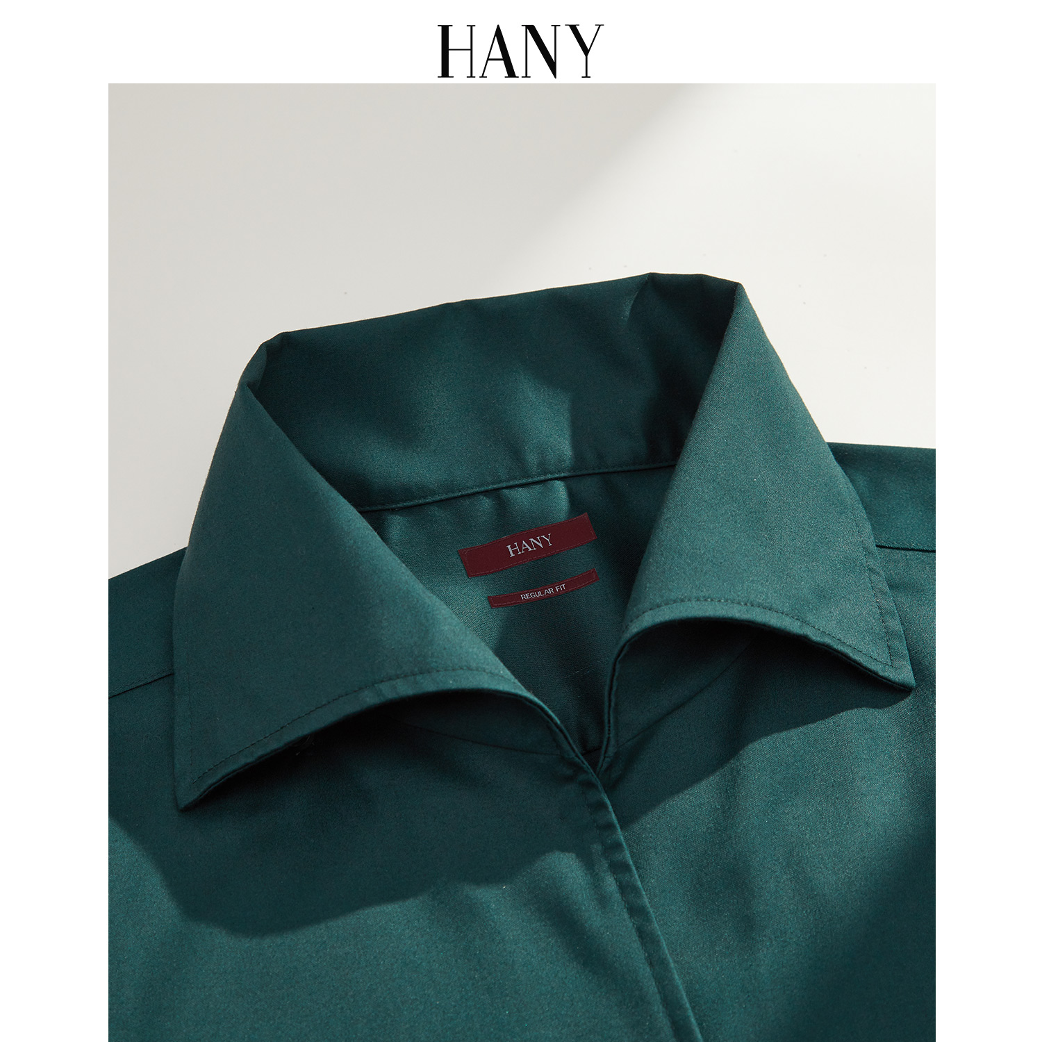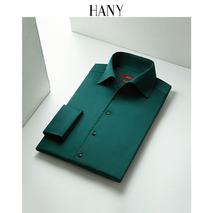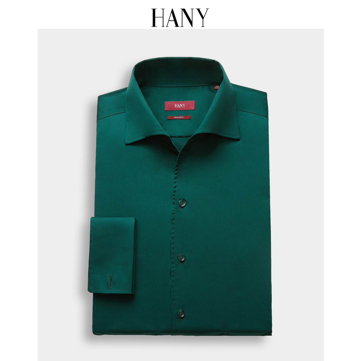 【断码清仓】HANY汉尼意式一片领法式衬衫男长袖墨绿色男士衬衣