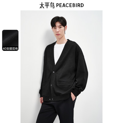 太平鸟男装 暗纹提花肌理感开衫卫衣春季青年休闲时尚外套
