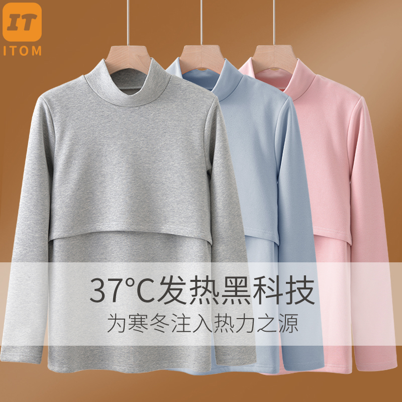 孕妇秋衣哺乳上衣加绒加厚保暖内衣秋冬季半高领打底衫喂奶月子服