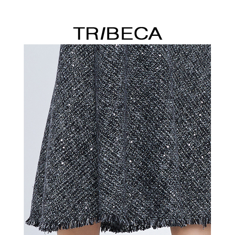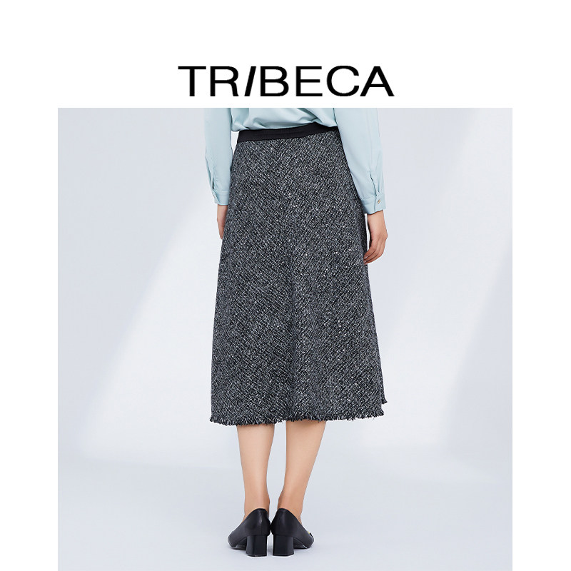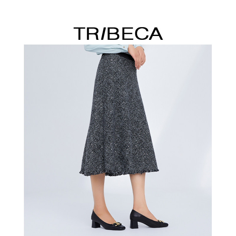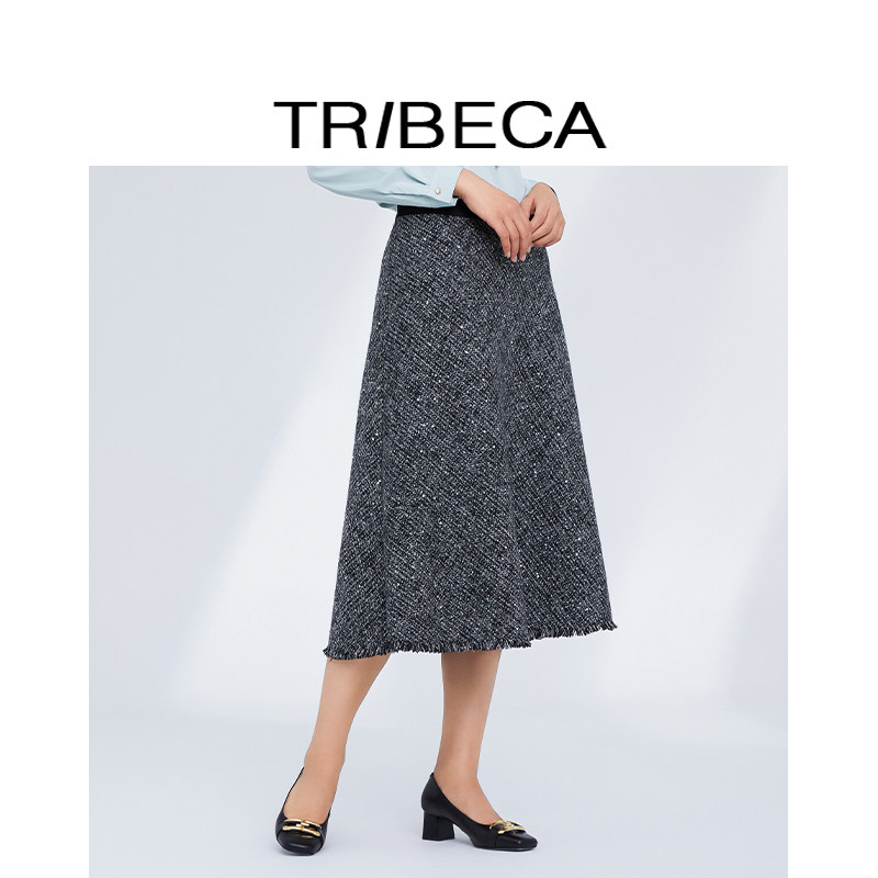 TRIBECA/翠贝卡2024秋新款商场同款黑色复古a字伞裙中长款半身裙