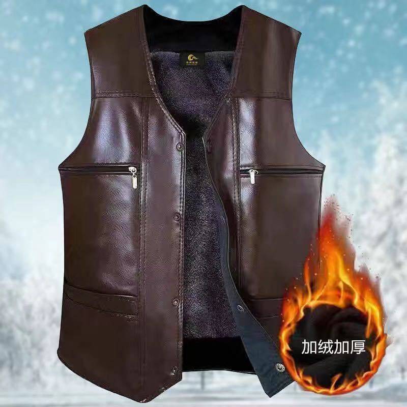 海宁真好皮马甲背心男士皮衣外套加绒加厚冬款爸爸背心马甲皮衣