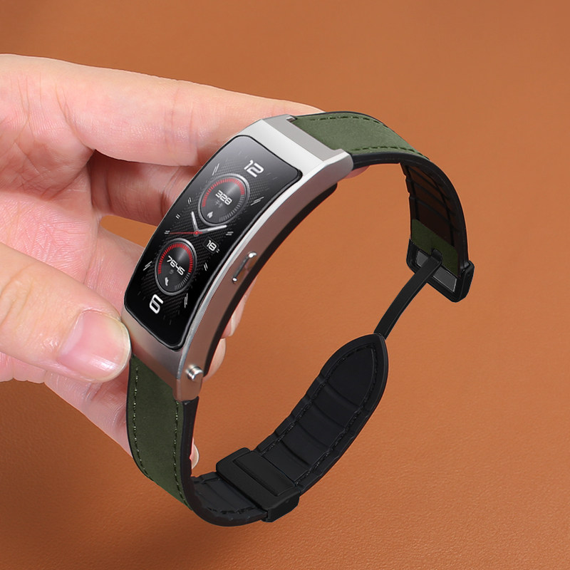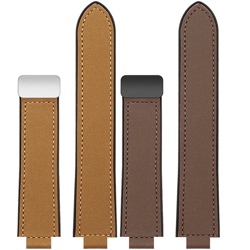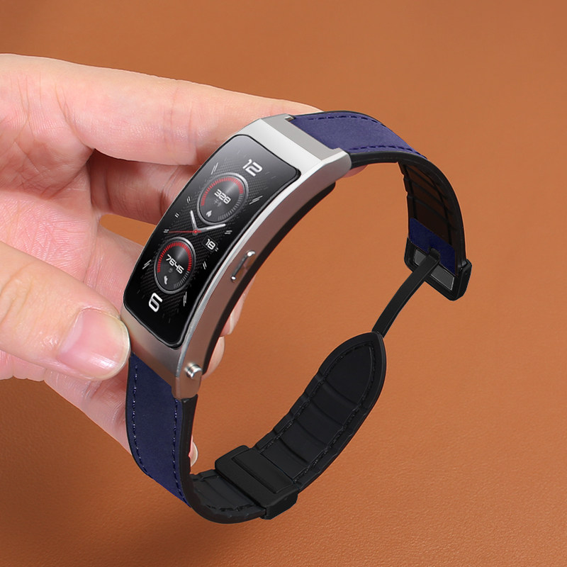 适用华为B6/B7/B5手环腕表通用B3磁吸扣疯马纹真皮手表带配件男女