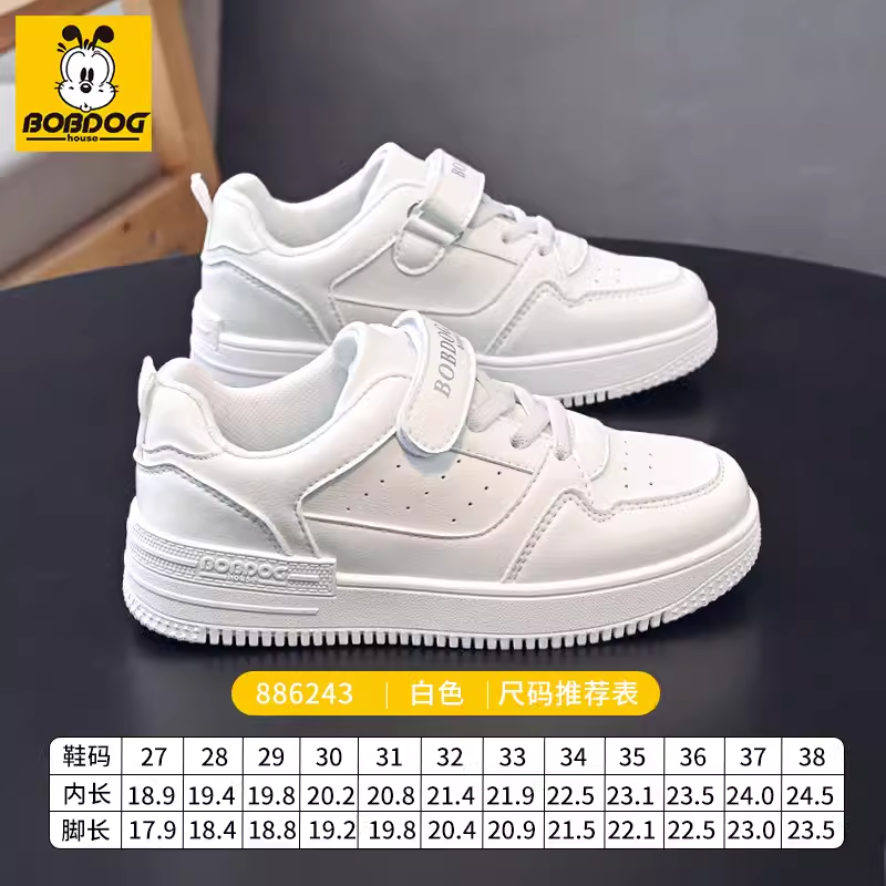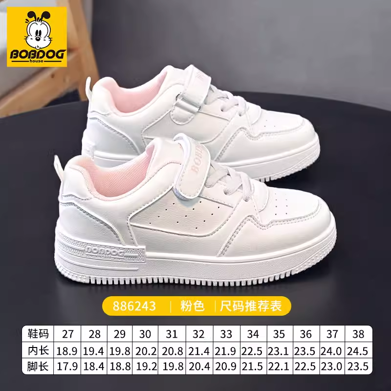 巴布豆童鞋儿童板鞋男童白色运动鞋2024春季新款小白鞋女童学生款
