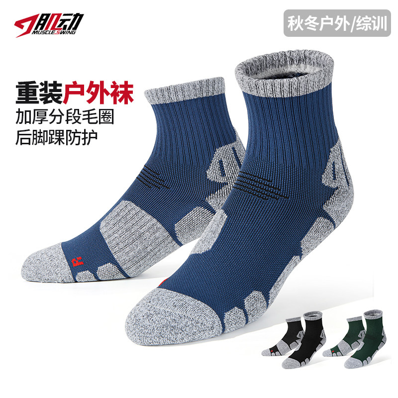 肌动户外秋冬加厚保暖专业马拉松跑步运动袜子男女徒步登山中筒袜