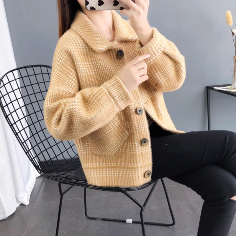 外套女2025新款春款爆款针织上衣时尚洋气显瘦短款仿水貂绒毛衣女