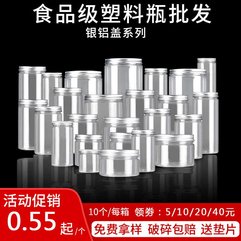 10个包邮银铝盖塑料瓶食品级饼干酱菜干果密封罐三七粉花茶包装瓶