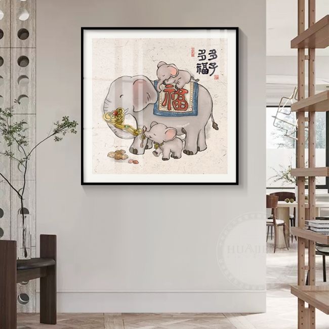 平安吉祥原创艺术挂画新中式大象客厅背景墙壁祥瑞苹果餐厅装饰画