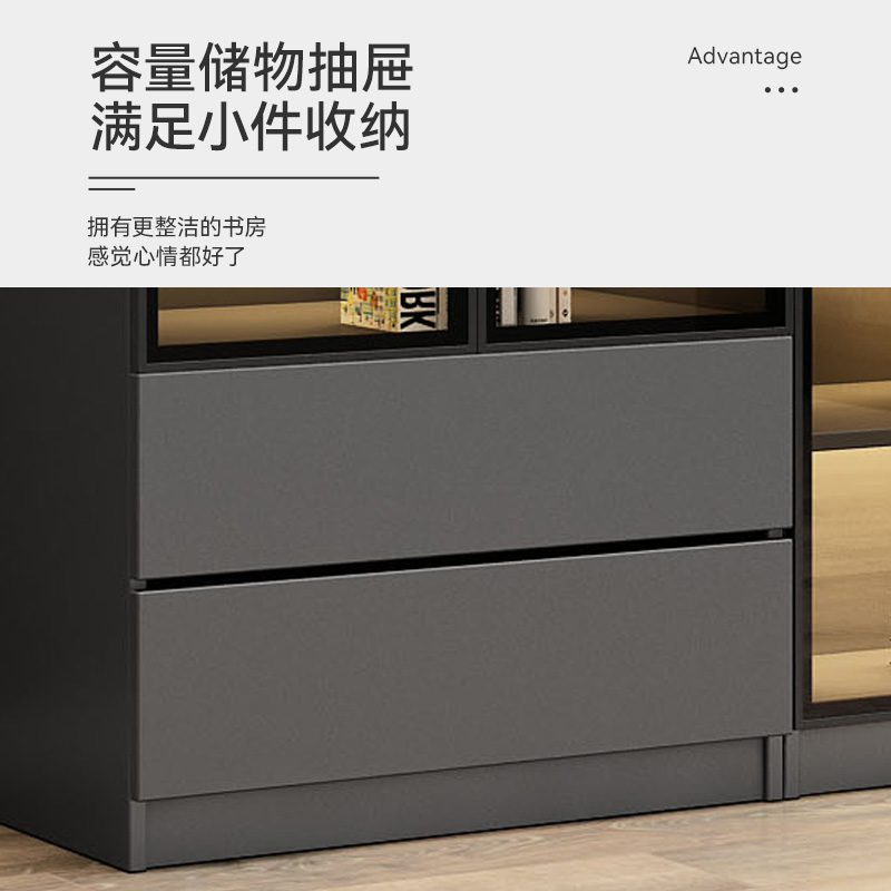 书柜书架b一体组合现代简约带玻璃门轻奢储物柜落地展示柜架子书