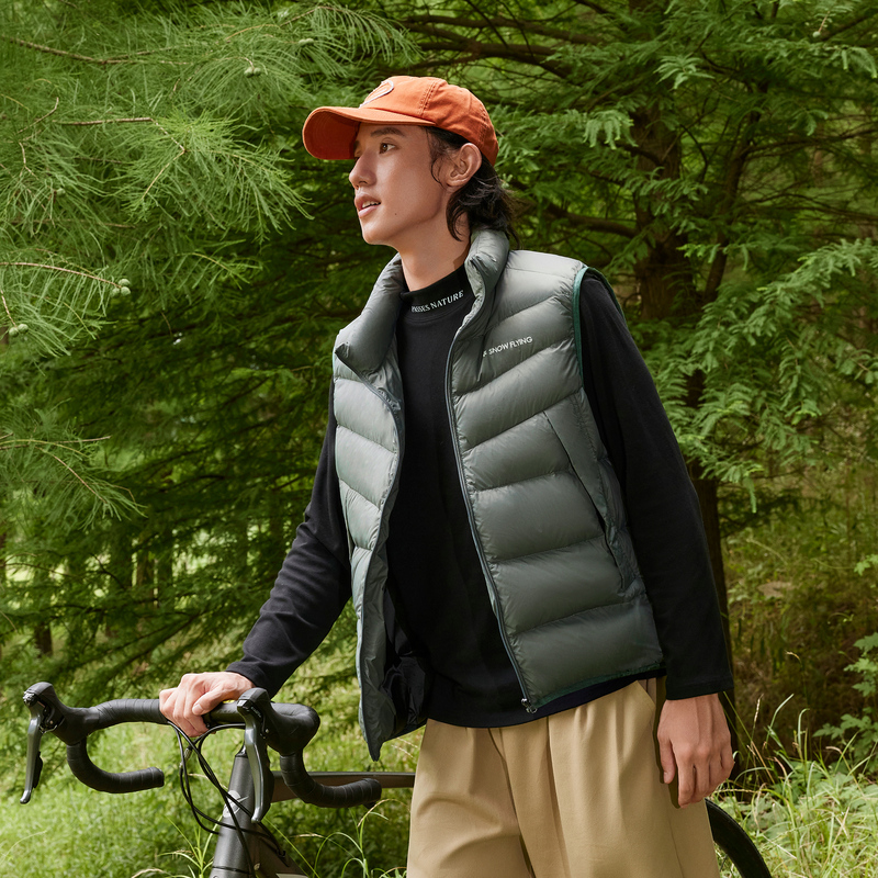 雪中飞2025秋冬新款男式羽绒服立领保暖森系羽绒马甲轻薄