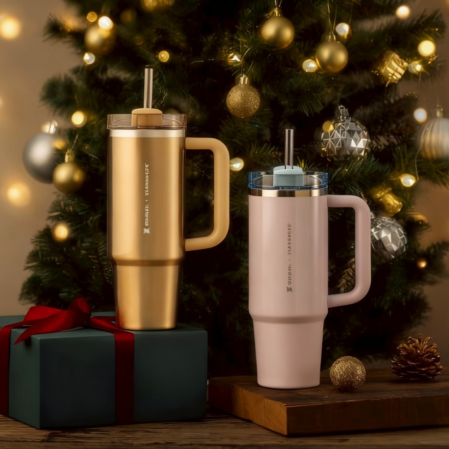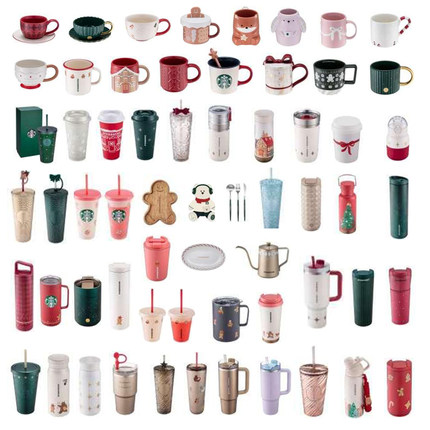 台湾星巴克杯子2025圣诞节系星星蝴蝶结菱格纹高颜值不锈钢随行杯