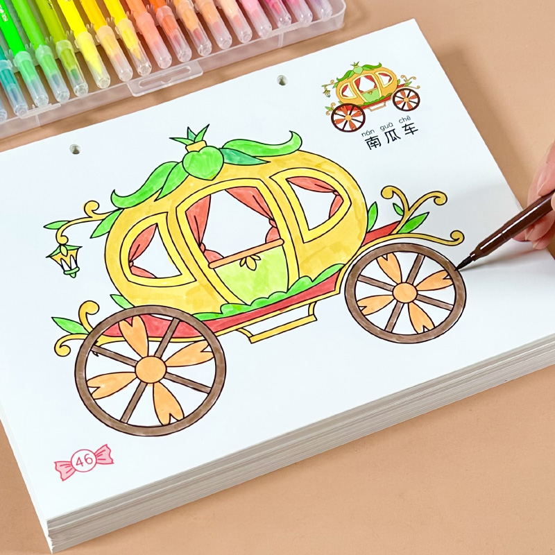 儿童公主涂色画画本3-6岁5幼儿园填色学画马克笔涂鸦绘画本A4大书