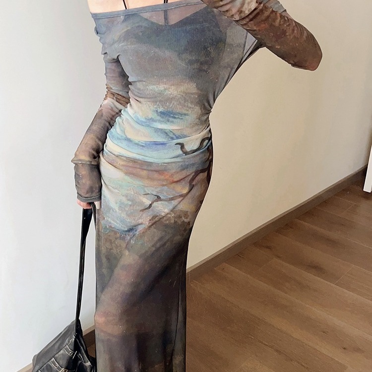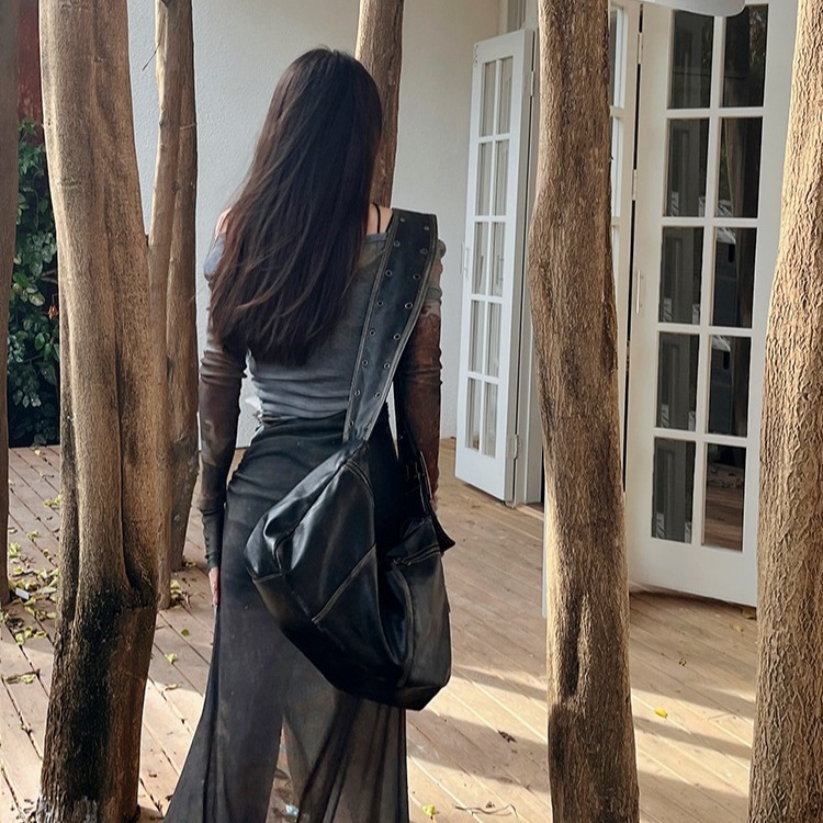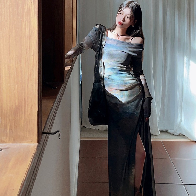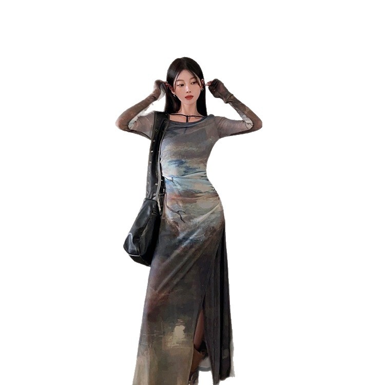 美式超好看御姐套装女春秋新款修身小背心+侧边开叉连衣裙两件套