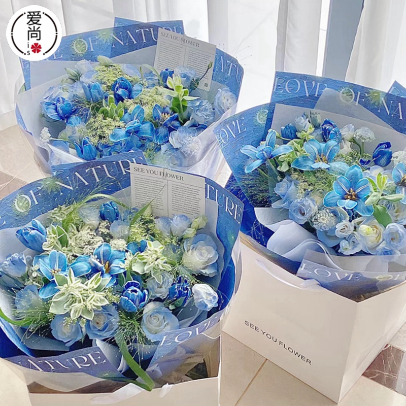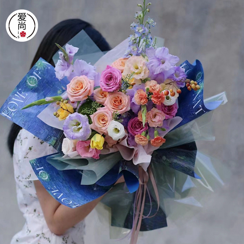 爱尚网红星空油画纸蓝色花束包花纸鲜花包装纸材料礼物艺术牛皮纸