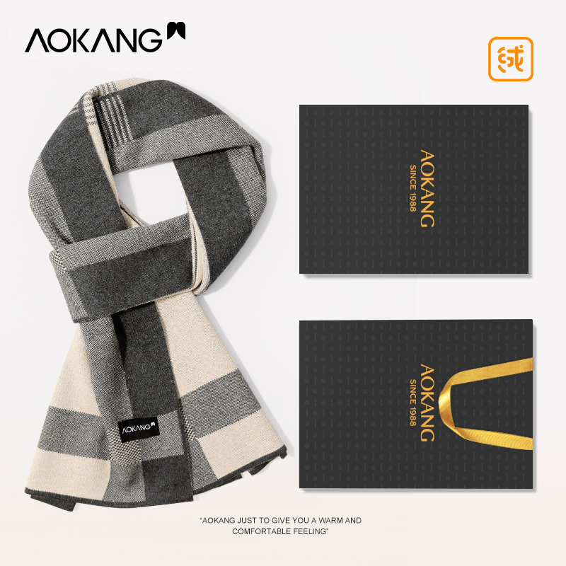 奥康男士围巾冬季2025新款围脖冬天加厚保暖男士礼盒装送男友围脖