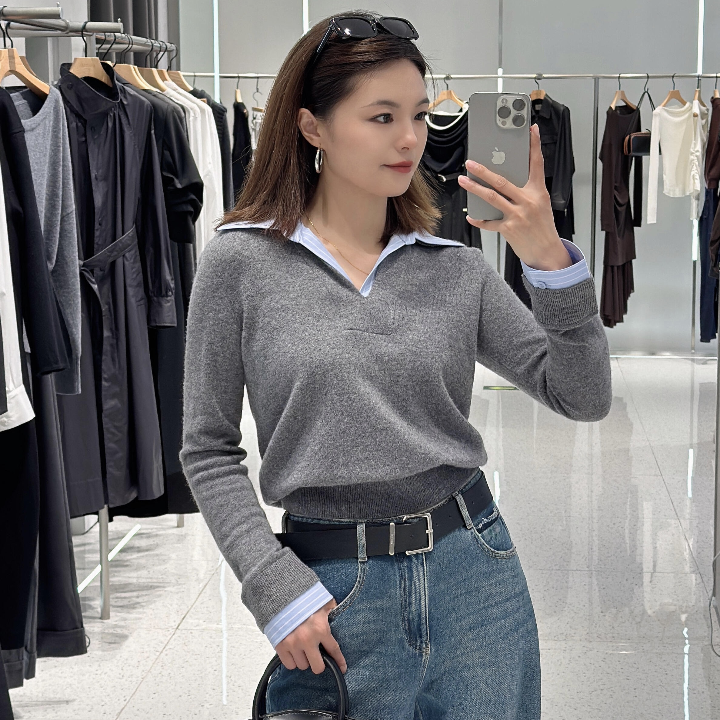 ariosee艾诺丝槿官方旗舰店2025秋装新款衬衫拼接针织衫AR804136