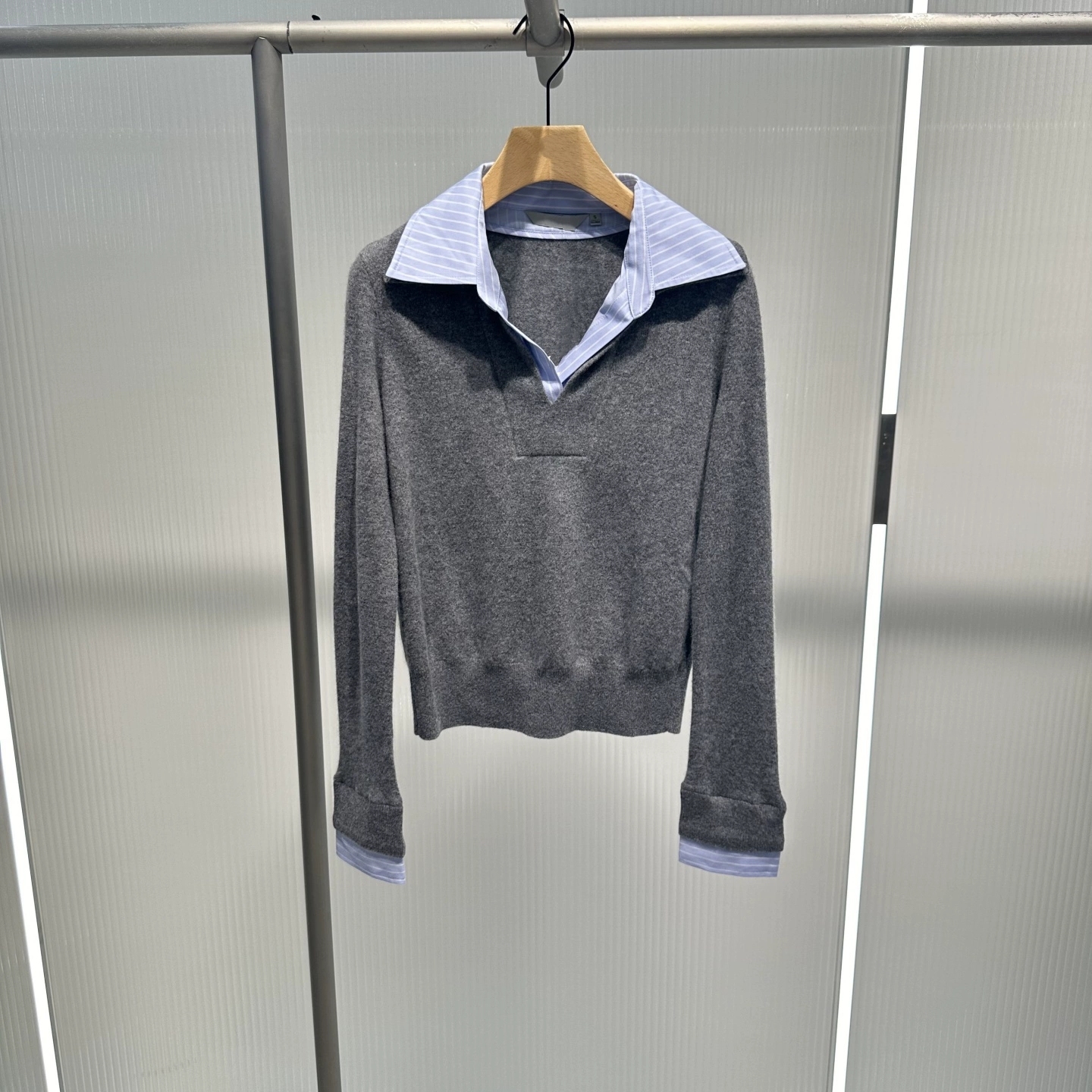 假两件衬衫拼接针织衫女上衣