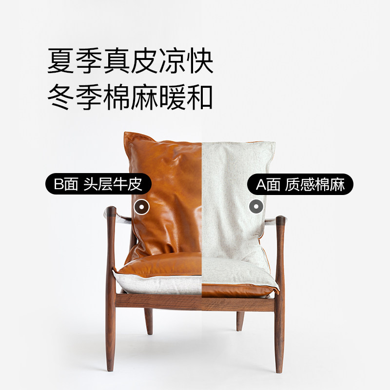 黑胡桃木沙发椅头层牛皮北欧良年