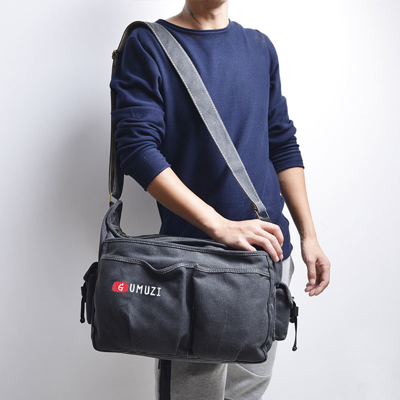 新款男士单肩斜挎包大容量帆布包结实耐磨工具包休闲旅行包多层潮