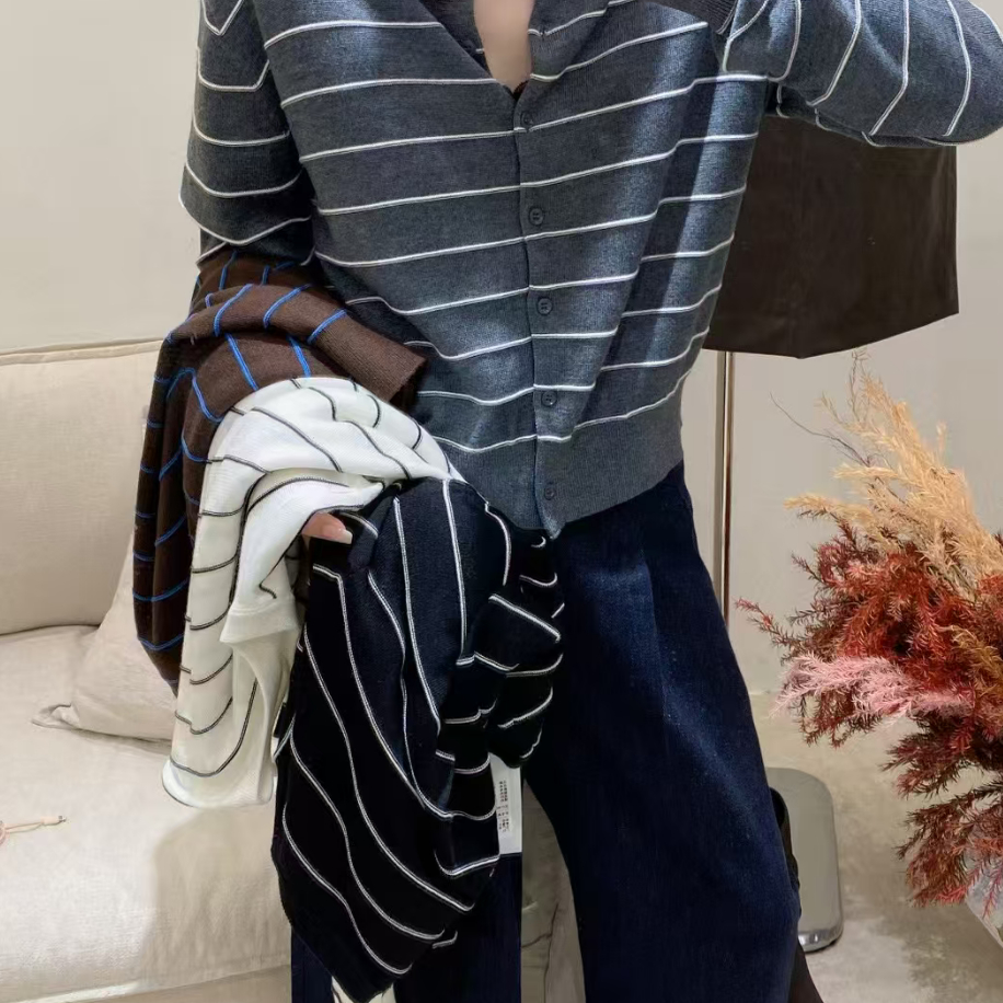 圣特罗佩 经典永恒条纹开衫 立体织法 条纹羊毛开衫