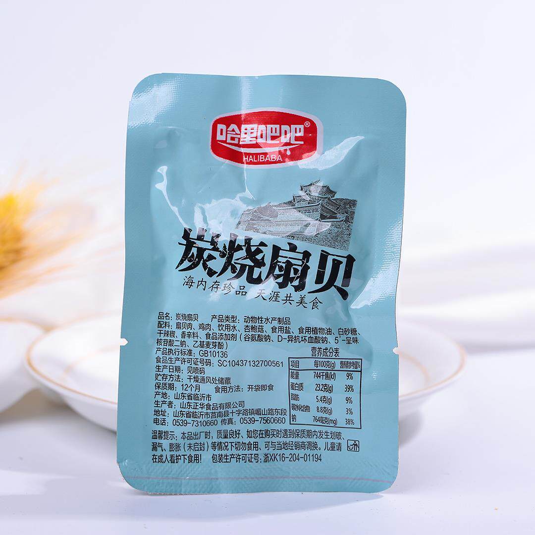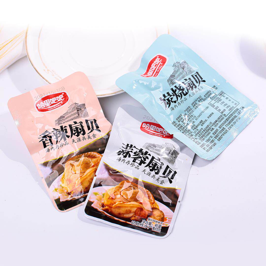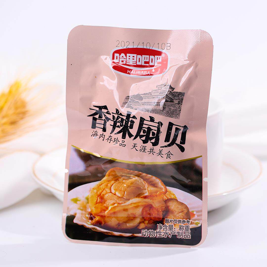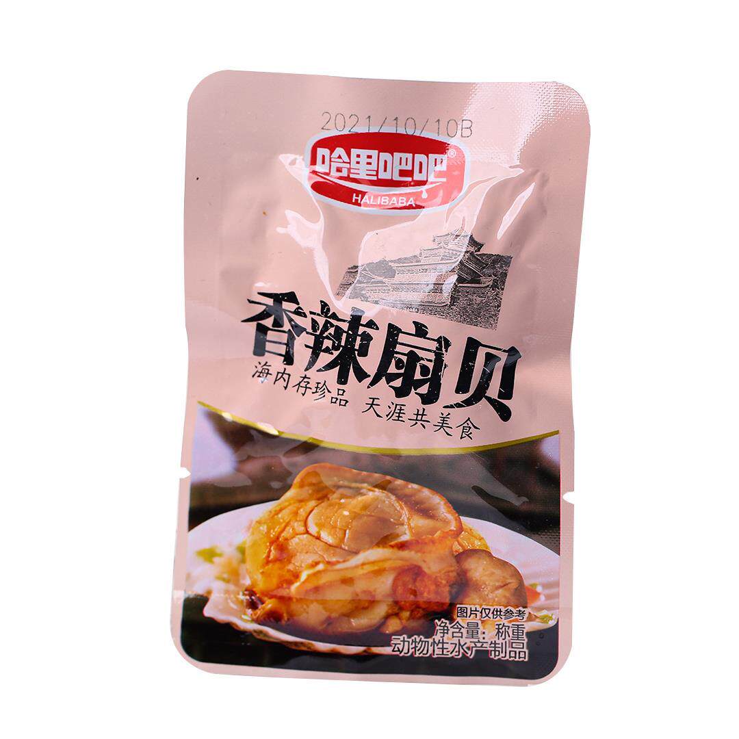 哈里吧吧炭烧香辣蒜蓉扇贝开袋即食花蛤甲蛤蜊肉小包袋装海鲜零食