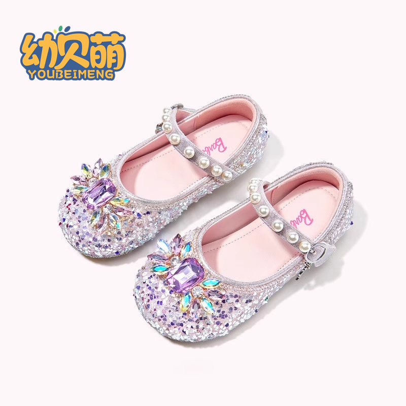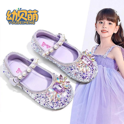 女童公主鞋2025新款春秋软底艾莎小皮鞋小女孩水晶鞋儿童演出单鞋