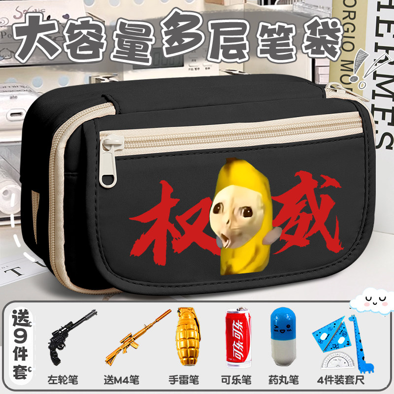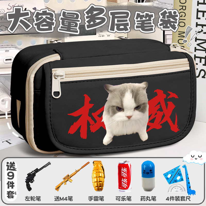 抽象笔袋男孩2026新款三角洲大大容量初中女生文具盒歪嘴小猫多层搞怪收纳抽象铅笔盒黑科技meme笔袋小学初中