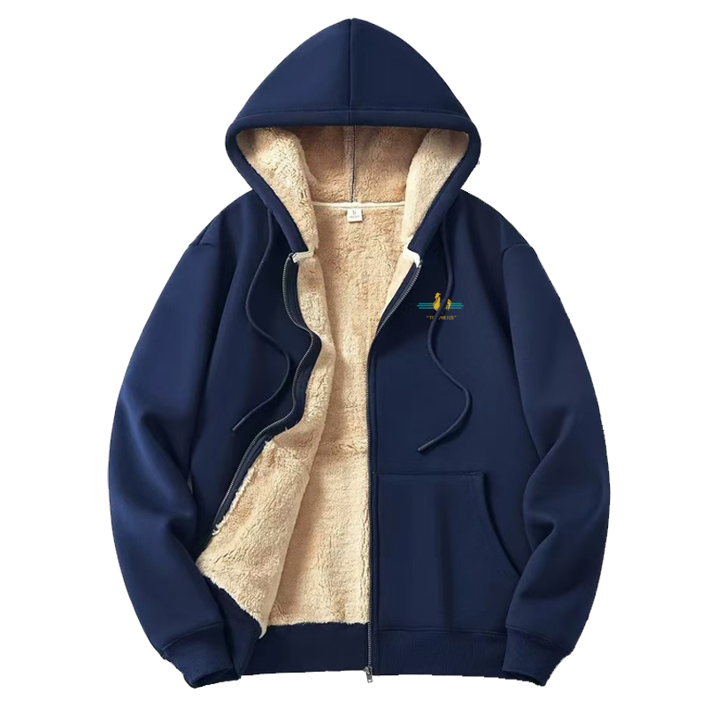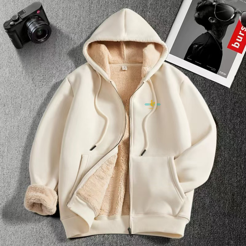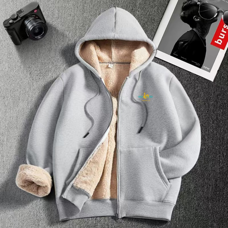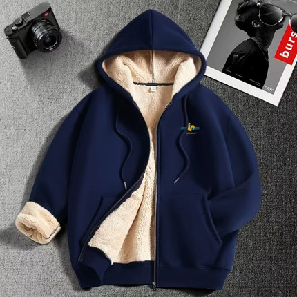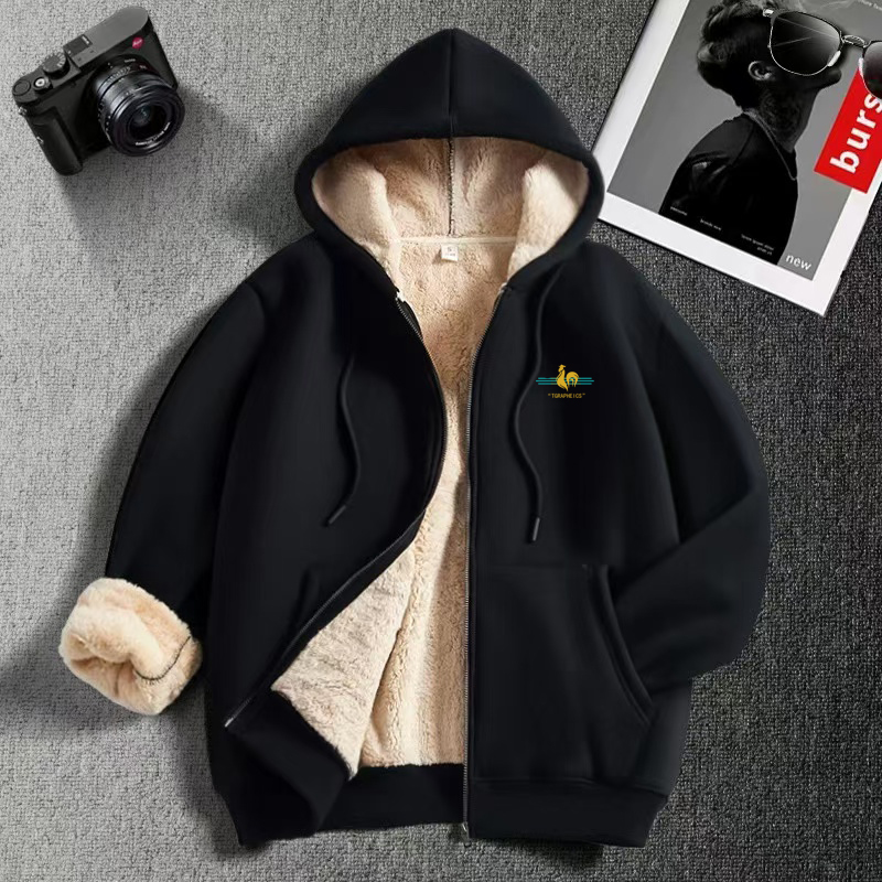 法国公鸡羊羔绒卫衣男士2025新款秋冬季加绒加厚连帽开衫拉链外套
