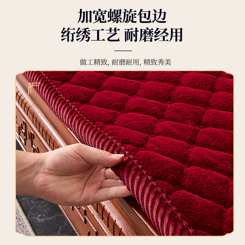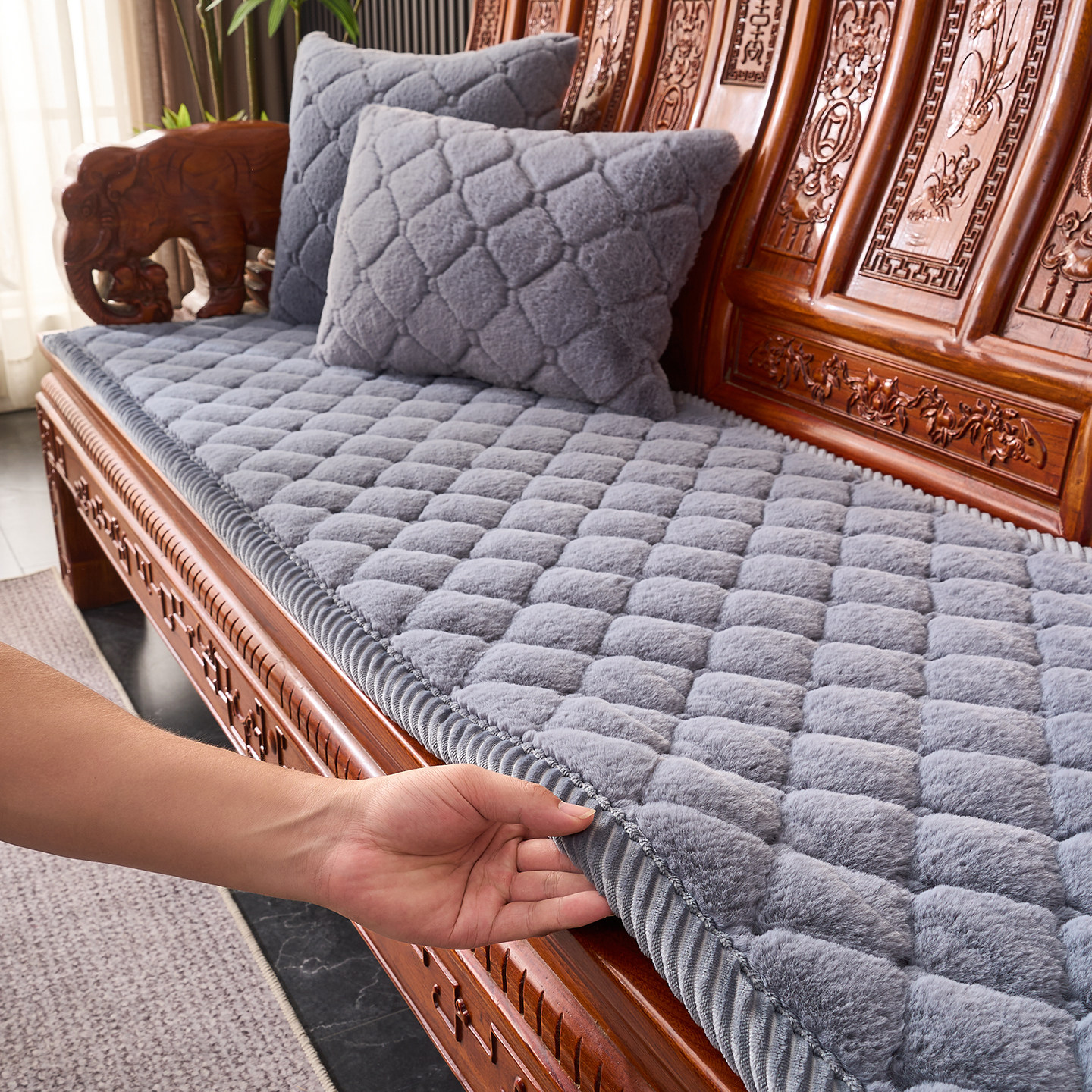 兔毛绒红木沙发垫冬季加厚防滑实木坐垫椅垫新中式沙发垫毛绒垫子