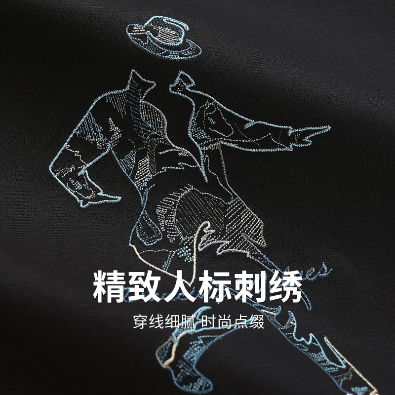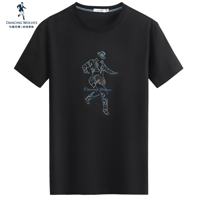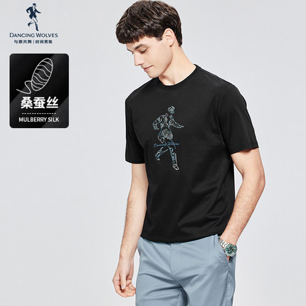 【桑蚕丝】与狼共舞圆领短袖T恤男2025夏季新款精致人标休闲短t男
