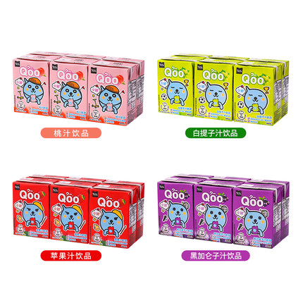 酷儿橙汁饮料美汁源Qoo酷儿苹果黑加仑儿童饮料200mL白提子味蜜桃