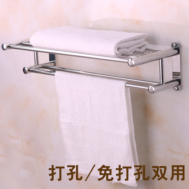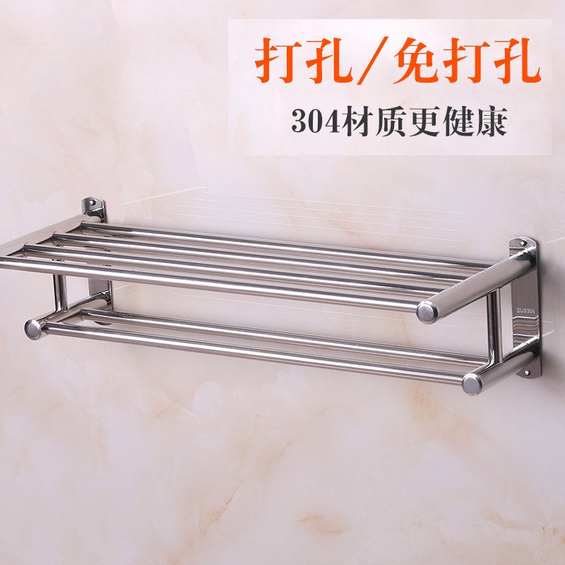 卫生间免打孔毛巾架304不锈钢浴巾架浴室架加厚卫浴挂件酒店宾馆