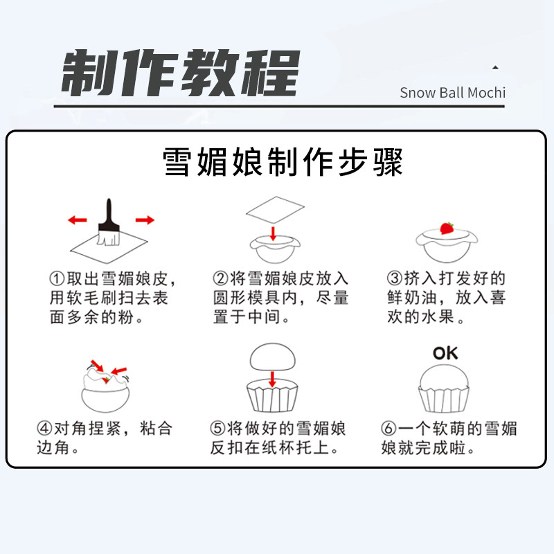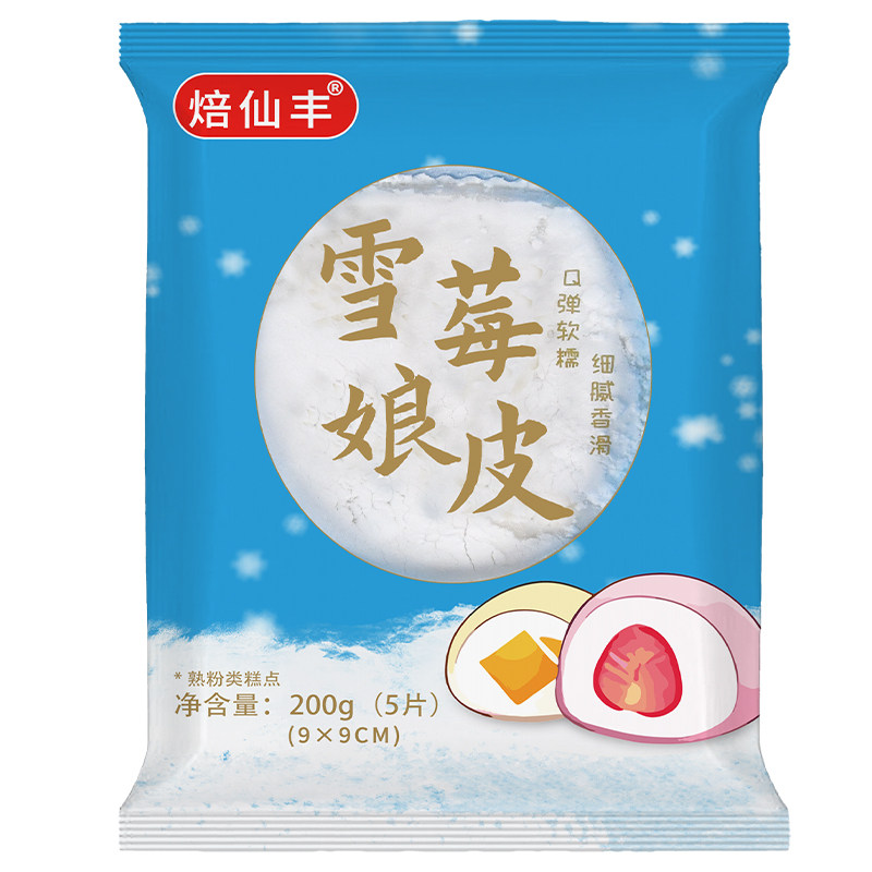 焙仙丰雪媚娘皮200g 草莓味芒果味哈密瓜原味商用雪媚娘皮半成品