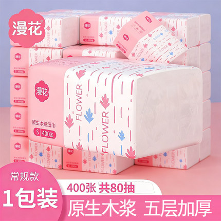 漫花抽纸400张纸巾家用擦手面巾纸餐巾纸柔软亲肤擦脸纸巾软包抽