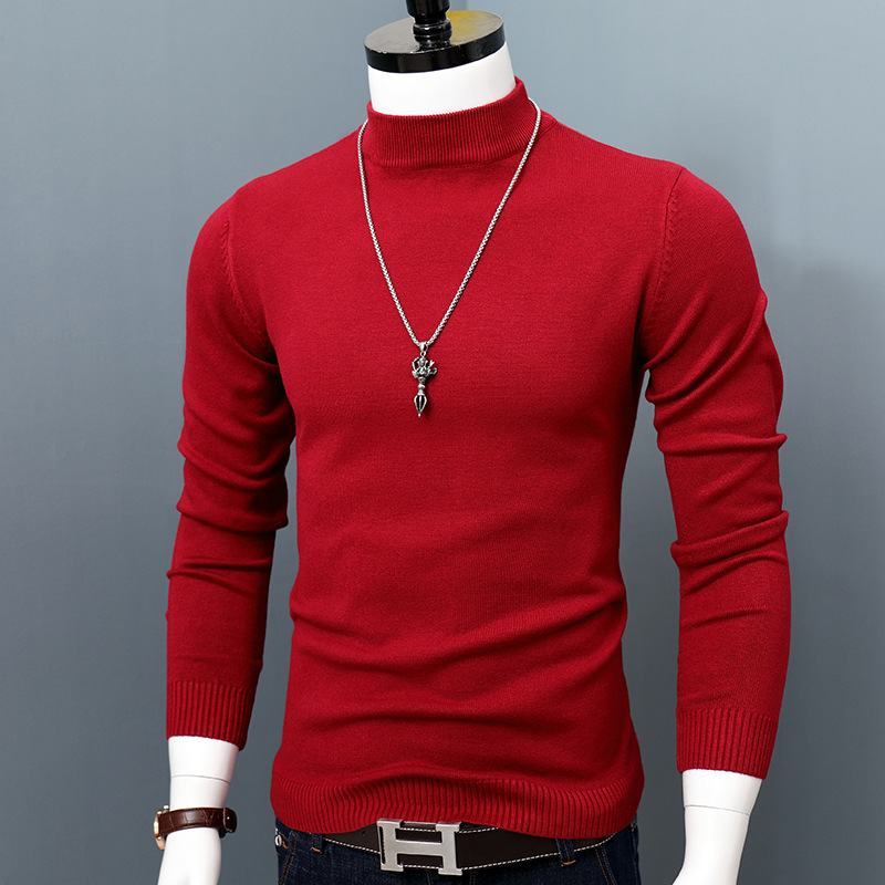 秋冬半高领羊绒衫男士宽松保暖加厚套头中领针织衫纯色打底毛衣