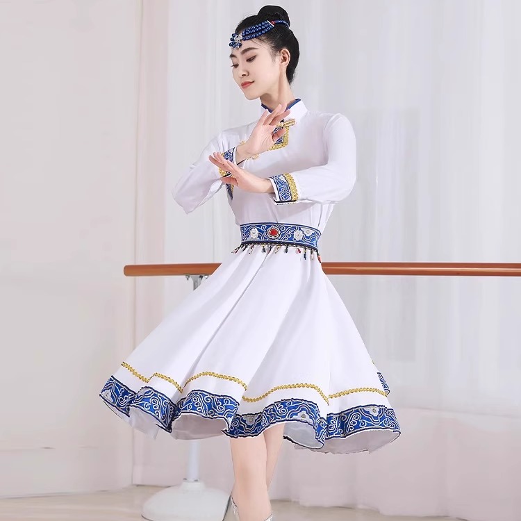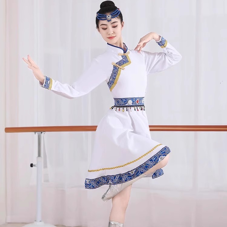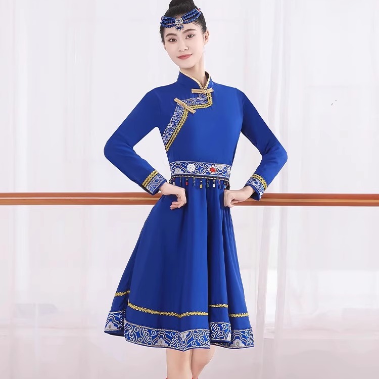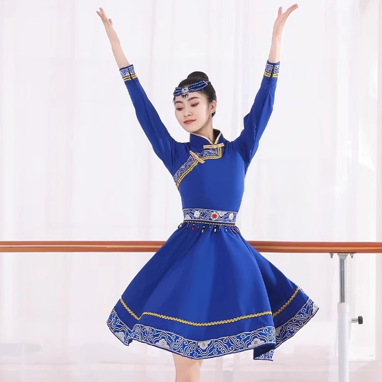 蒙古族舞蹈服女生少数民族服装新款艺考练功服草原舞演出服蒙古袍