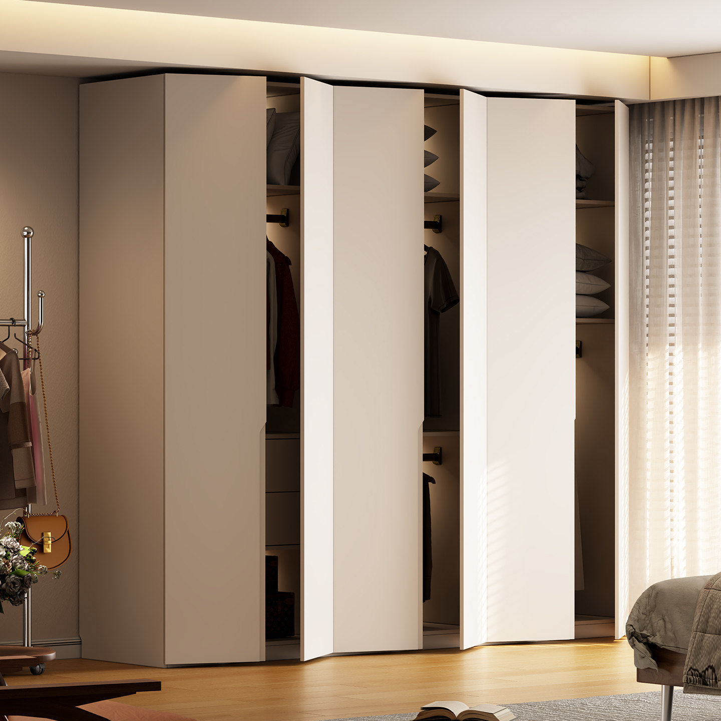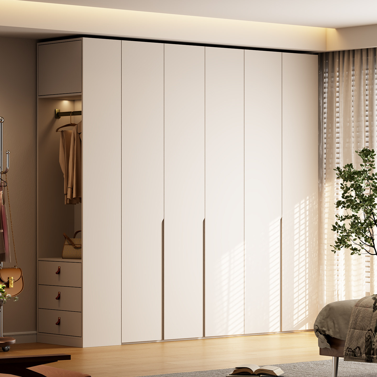 兔宝宝板材ENF级衣柜实木定制卧室家用2025新款免拉手分段式衣橱