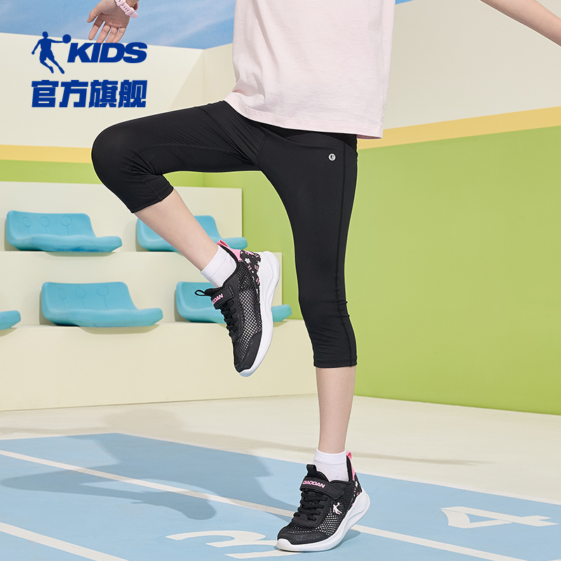 乔丹童装女童速干裤紧身裤透气七分短裤2025夏季新款儿童运动裤子