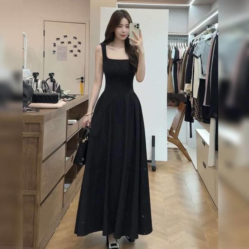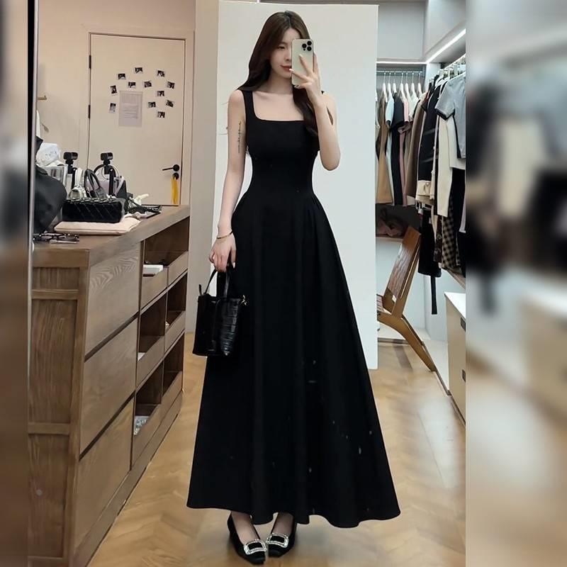 法式黄色气质吊带连衣裙子女夏季2025新款度假高级感背心掐腰长裙