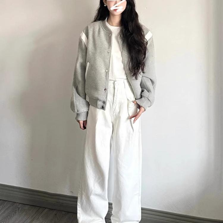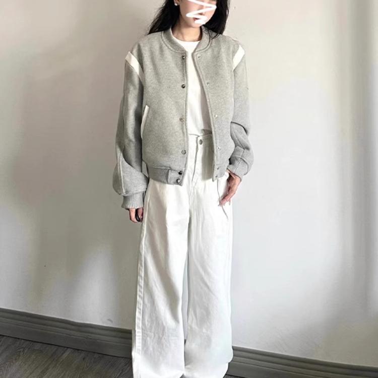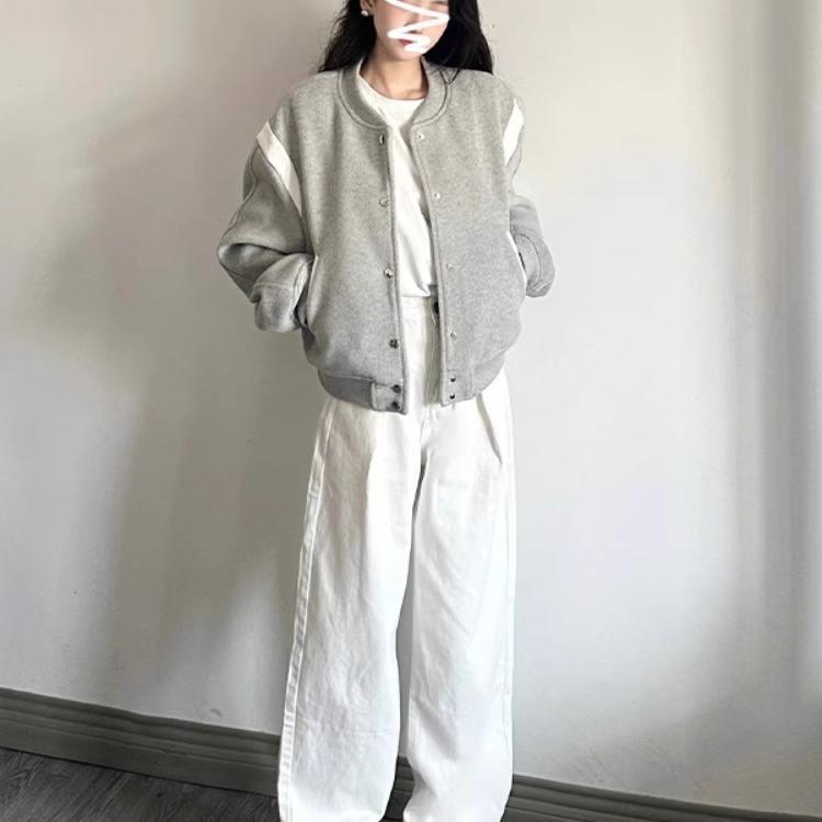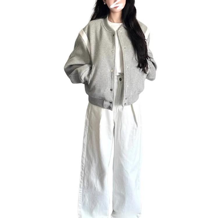 早初秋灰色棒球服外套女春秋2025新款韩版爆款小个子短款夹克