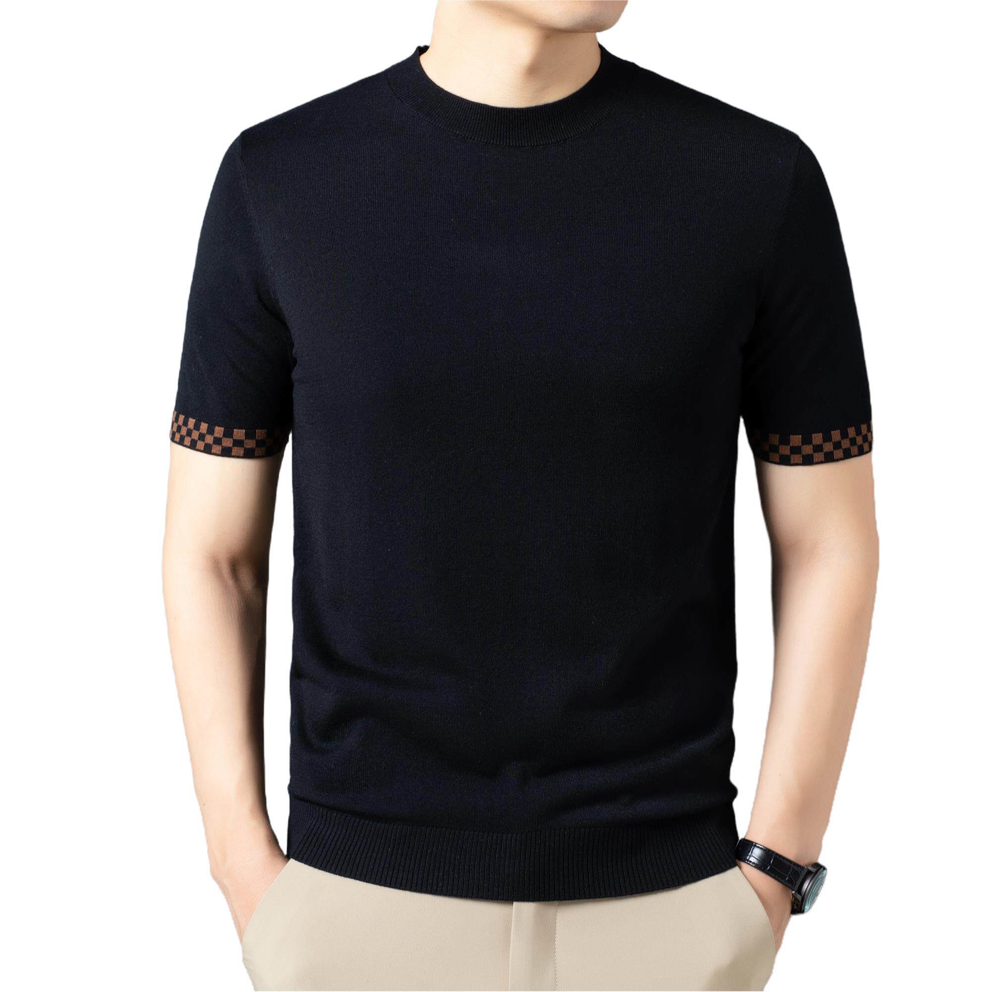 羊绒短袖针织衫T恤男士羊毛圆领皮尔卡丹桑蚕丝打底衫修身款毛衣