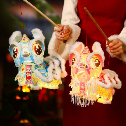 2026马年元宵毛绒醒狮小灯笼儿童手提花灯手工幼儿园新年过年宫灯