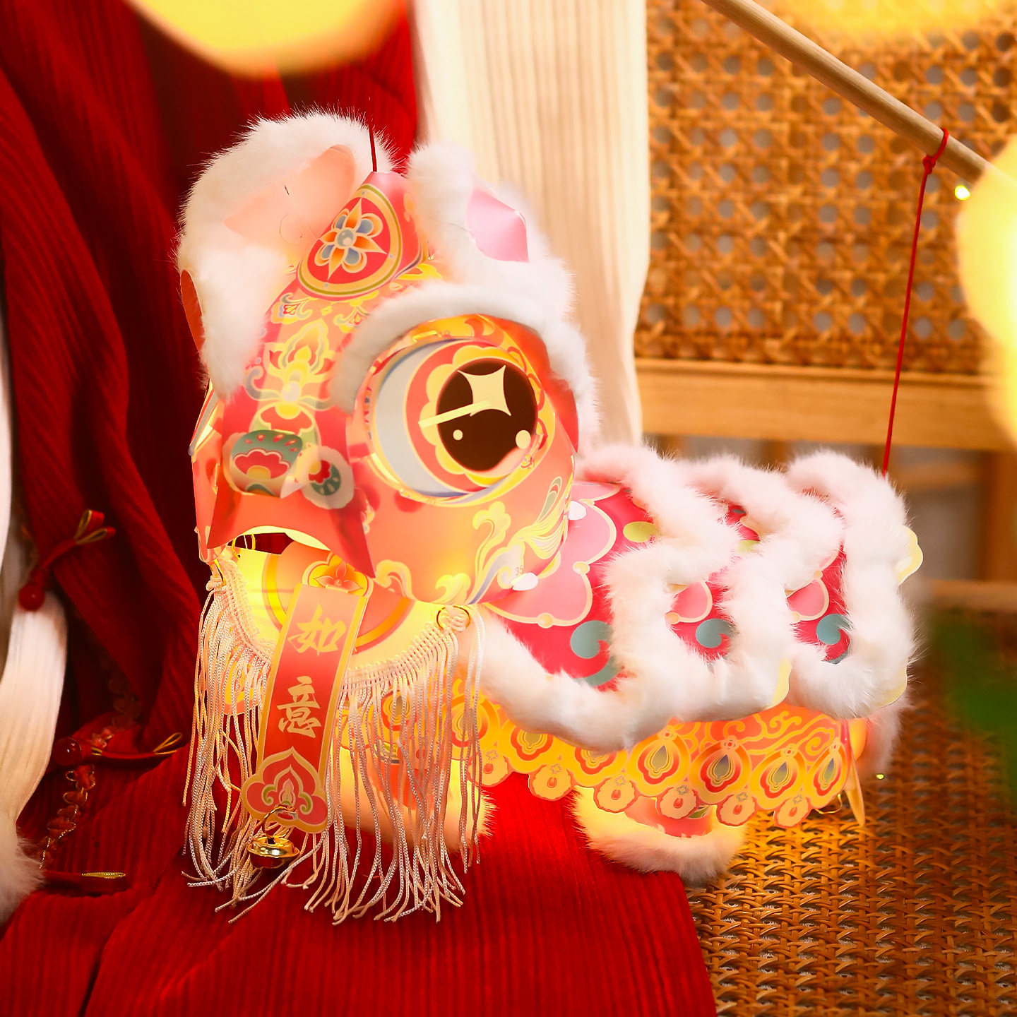 2026马年元宵毛绒醒狮小灯笼儿童