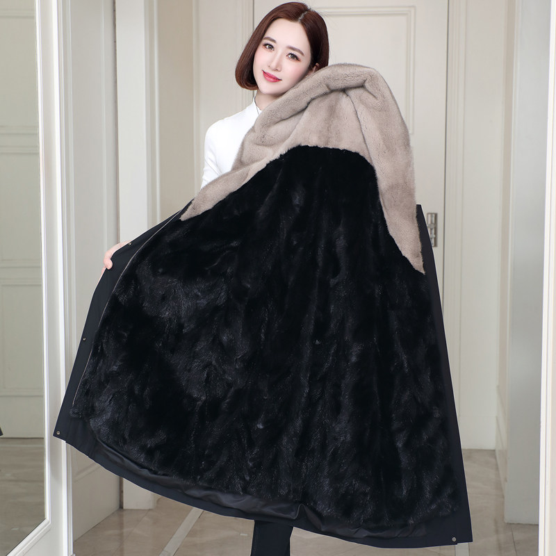 派克服女冬季新款水貂毛貂皮内胆可拆卸海宁皮草尼克服外套中长款