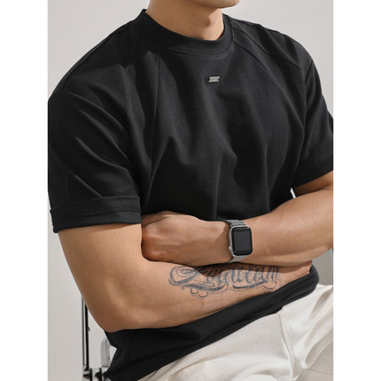 LUUD 插肩袖极简风棉质短袖T恤男夏季美式潮牌金属装饰圆领体恤衫