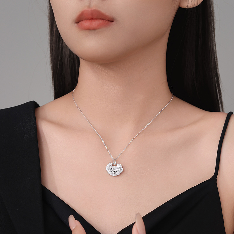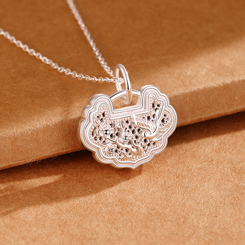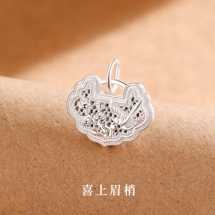 s999足银喜上眉梢项链坠纯银吊坠平安锁长命锁挂坠送女友生日礼物