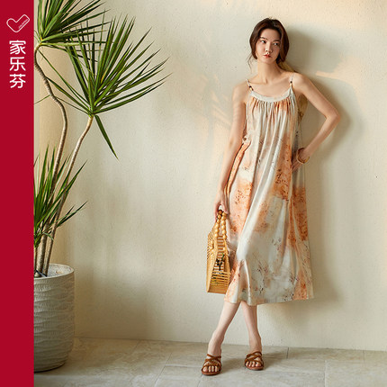 家乐芬带胸垫睡裙女士睡衣夏季夏款夏天莫代尔连衣裙冰丝吊带长裙