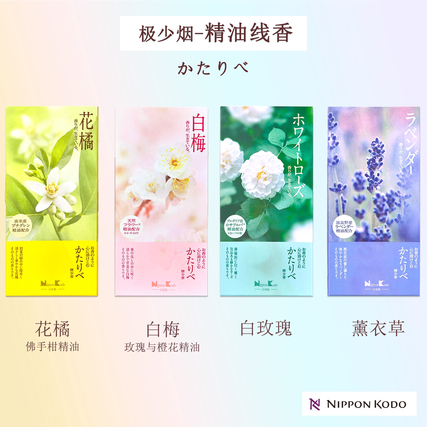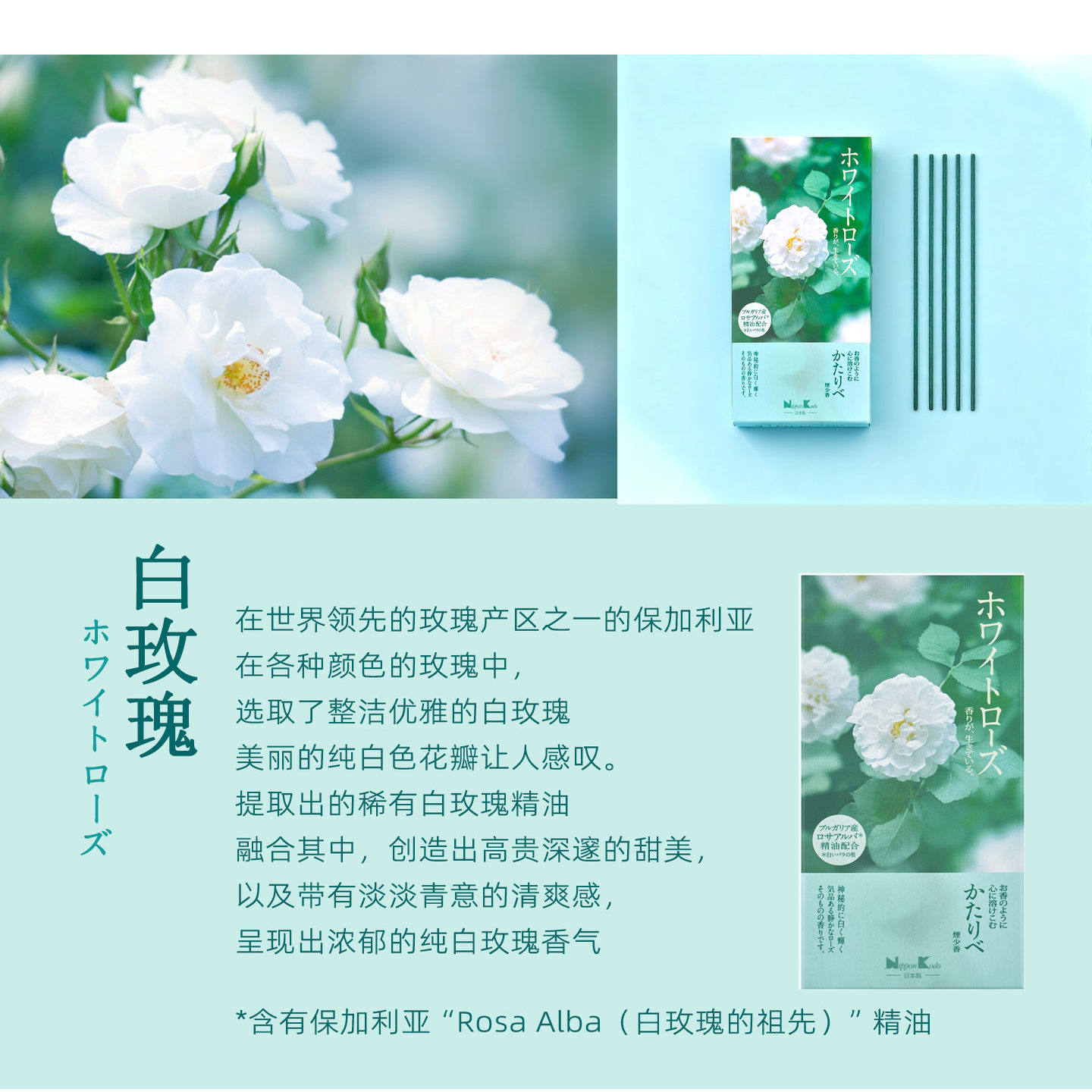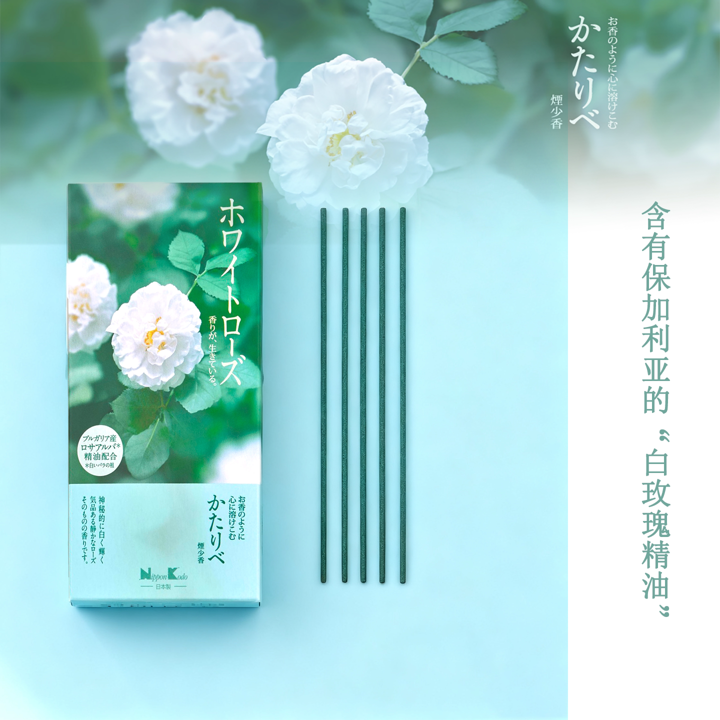日本香堂进口 白玫瑰精油线香底座 香薰香放松极少烟花香盒装