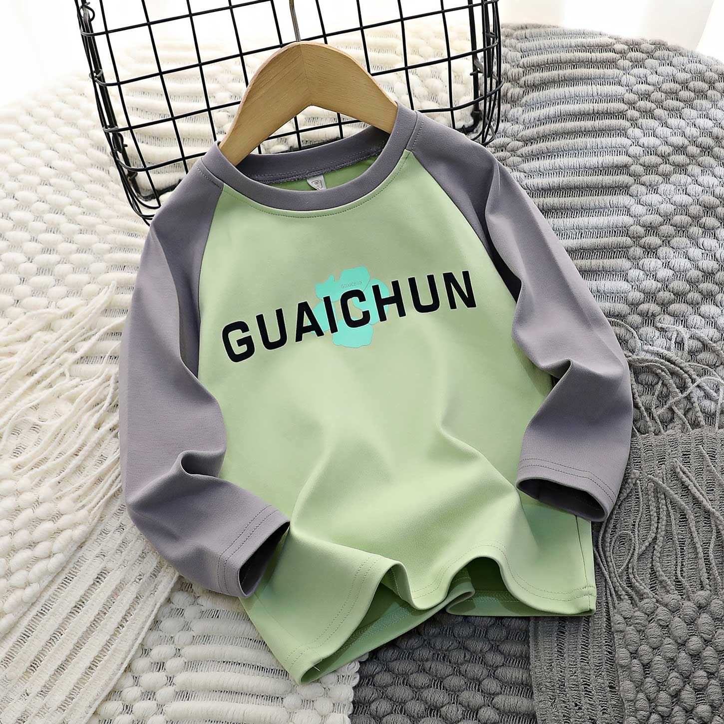 乖纯童装秋装长袖T恤男童女童全棉圆领打底衫儿童插肩卫衣韩上衣