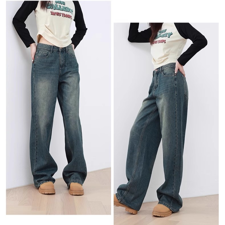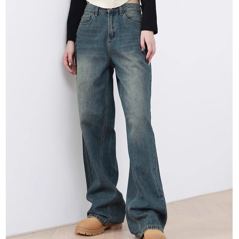 Mixblu麦斯兰专柜正品高腰磨白阔腿裤长裤牛仔裤女春秋冬WXA29845