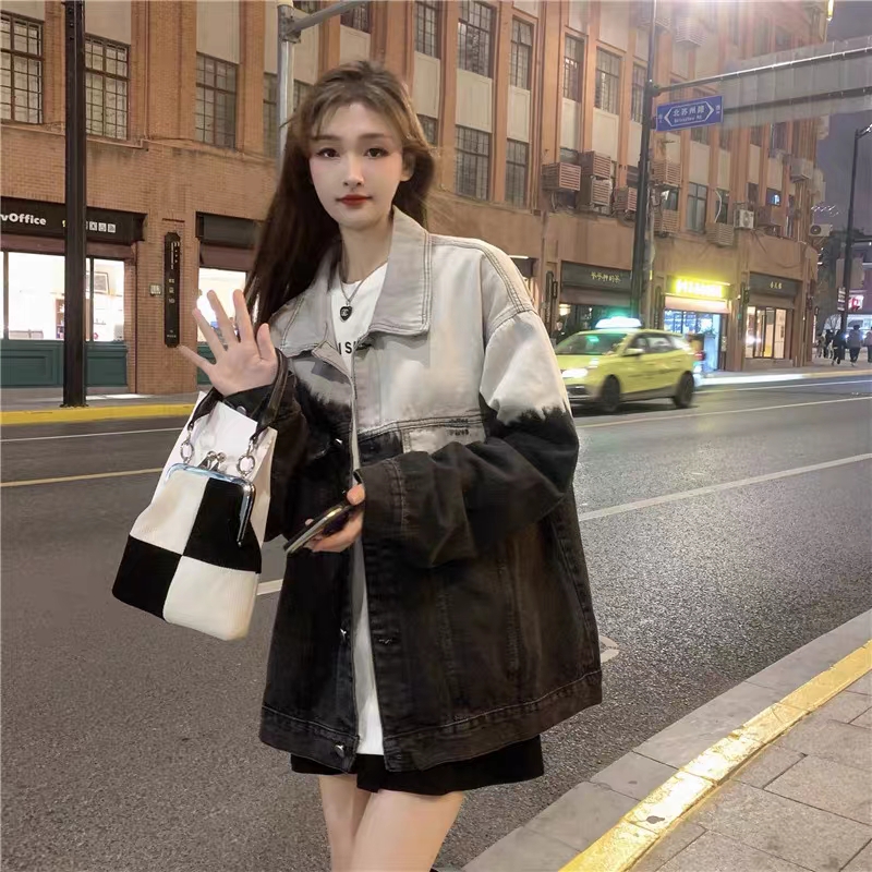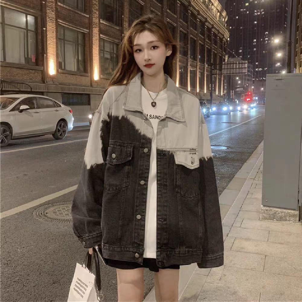 渐变色牛仔外套女秋季2025新款韩版宽松美式复古港味长袖夹克上衣